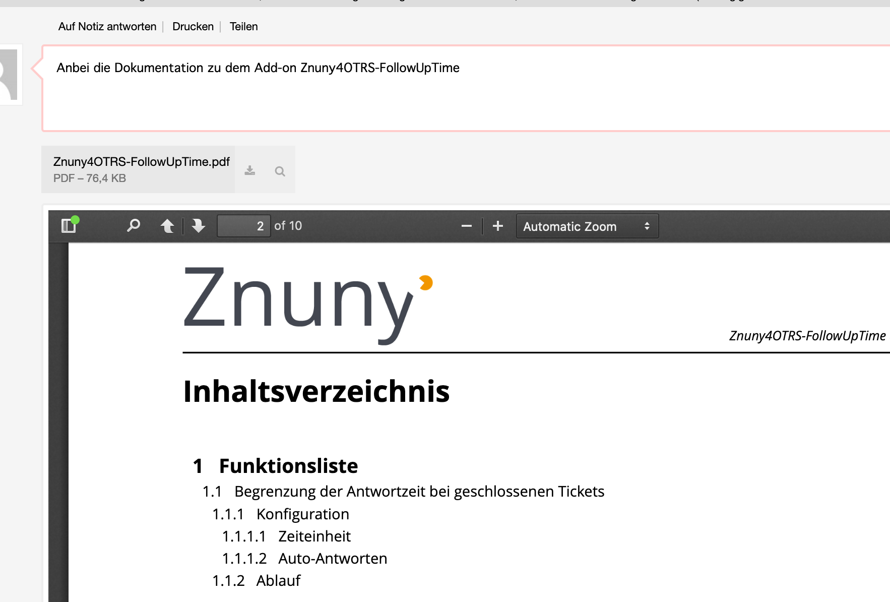 Steigern Sie die Leistung Ihres Teams. Sie müssen keine PDF Dokumente mehr herunterladen, nur um den Inhalt zu überprüfen. In der Ticket-Detailansicht steht eine Vorschau mit einem Mausklick schneller denn je zur Verfügung.