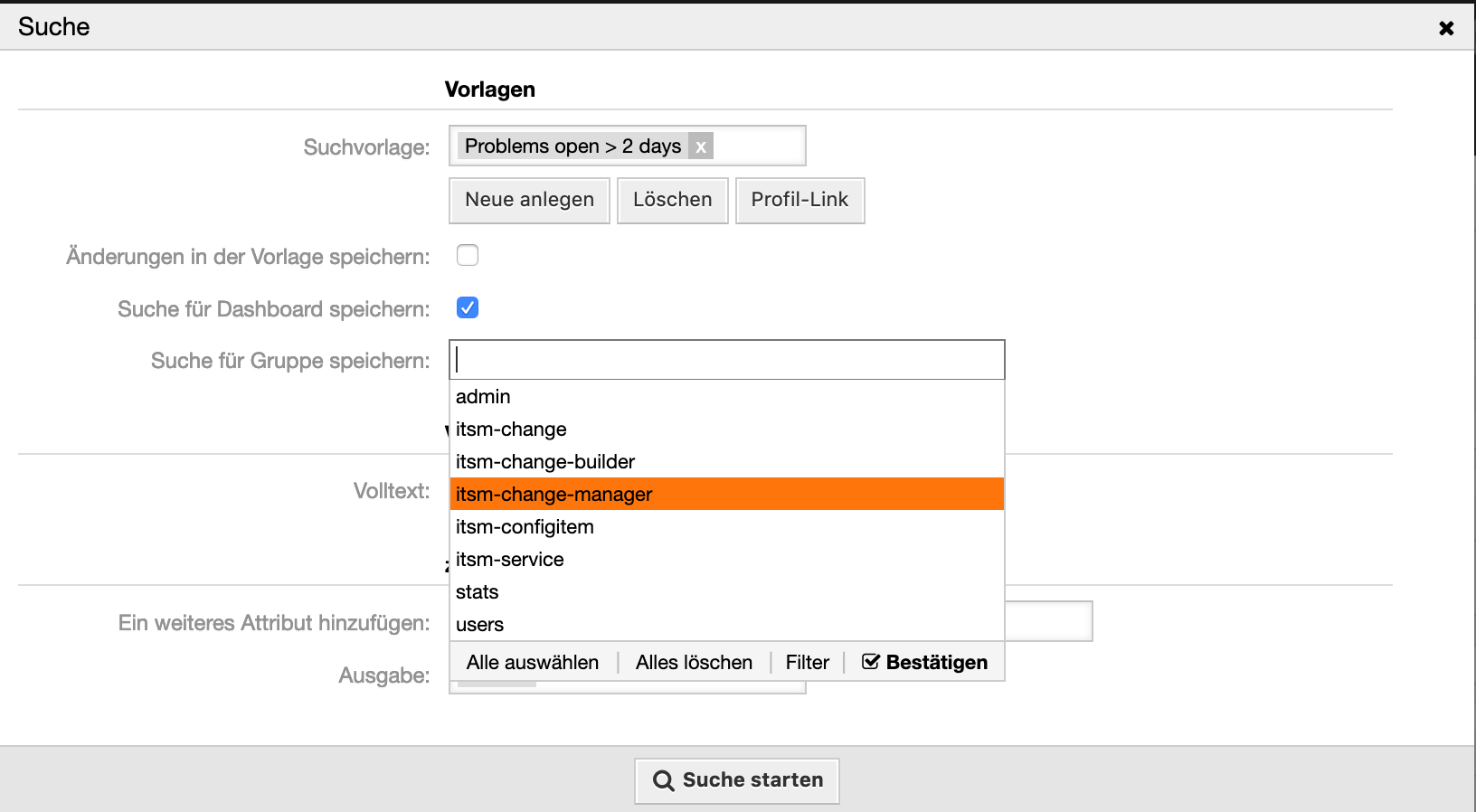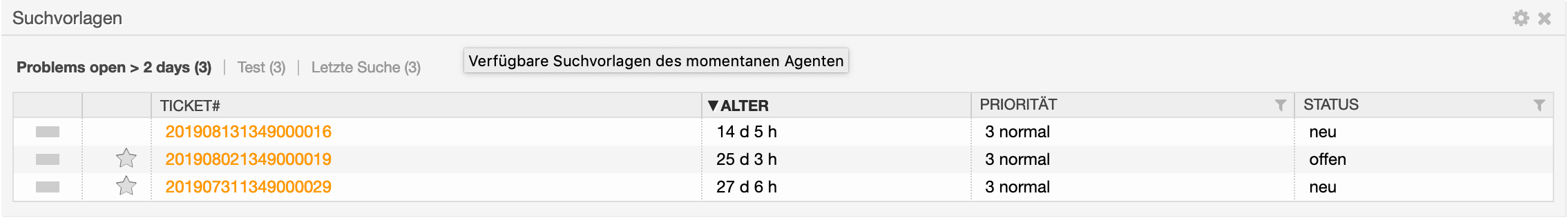 Mit diesem Dashboard-Widget werden Ihnen die Suchergebnisse gespeicherter Suchprofile anzeigt. Damit haben Sie einen einfachen und schnellen Zugriff auf Ihre häufig verwendeten Suchanfragen.