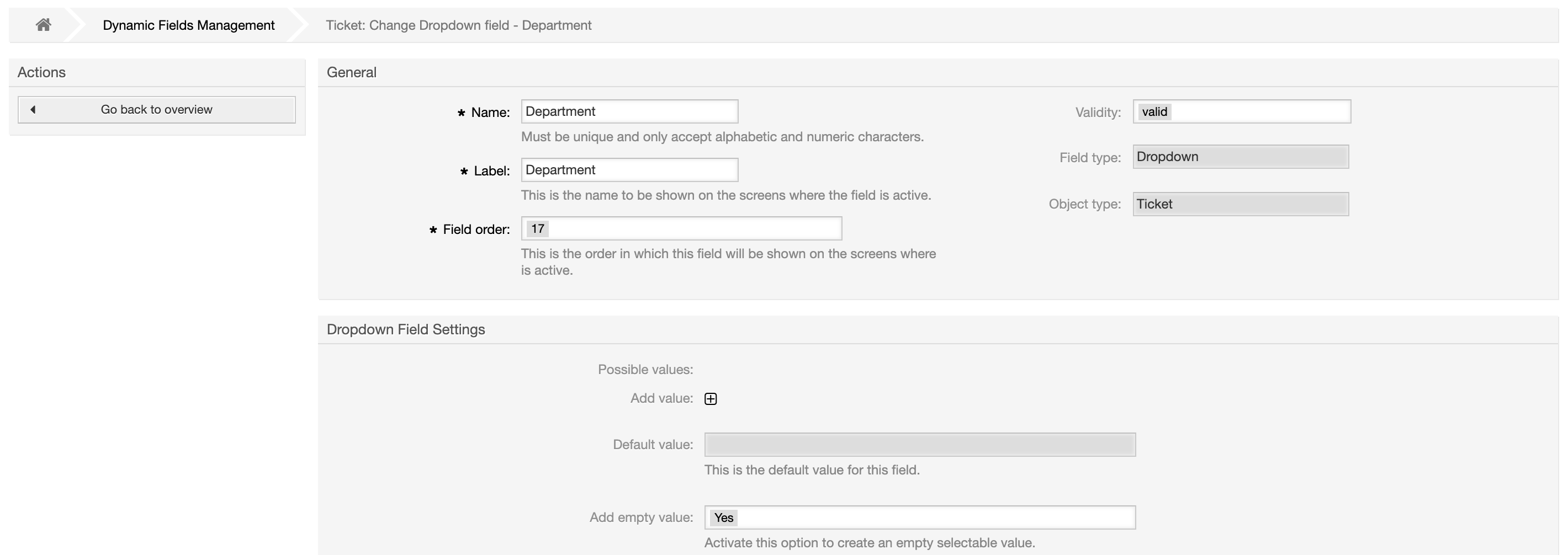 Create the required fields of the type drop down. The possible keys and values do not have to be created completely; they can also be added later via the Excel or CSV file.