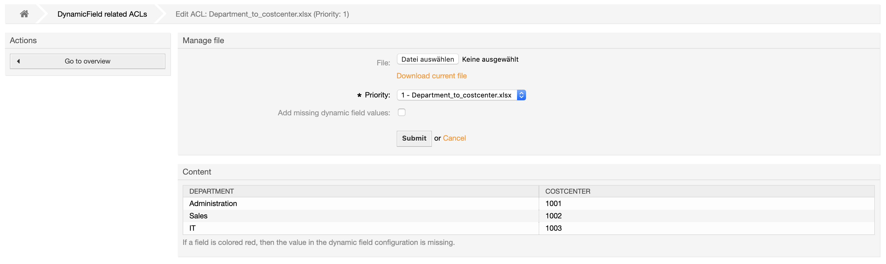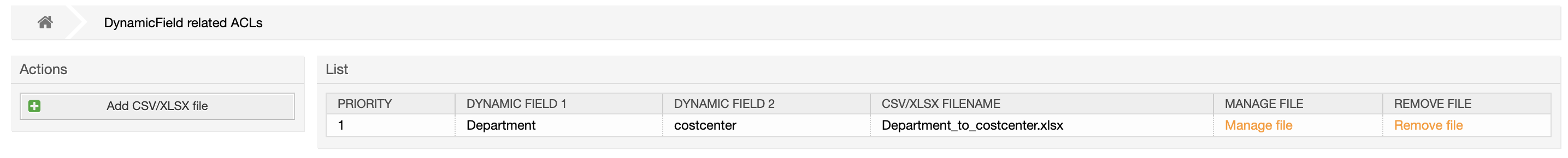 This add-on provides the feature to maintain dependencies between dynamic fields in an Excel or CSV file. Where previously had to be worked with countless ACLs now the data maintenance in a table is all you need. Especially in use cases where many possible values are stored in the dynamic fields or the values change regularly, this add-on can make your job easier.
