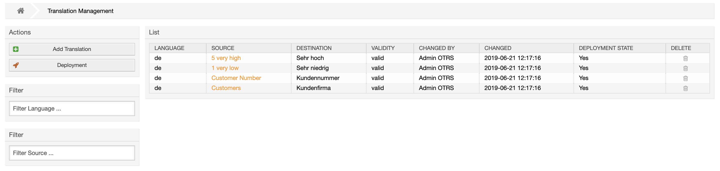 Keep the names of status, priorities, dynamic fields, etc. uniform and translate them into all required languages. Not only can you create additional translations, but you can also override existing translations to customize labels and text to your own terminology.