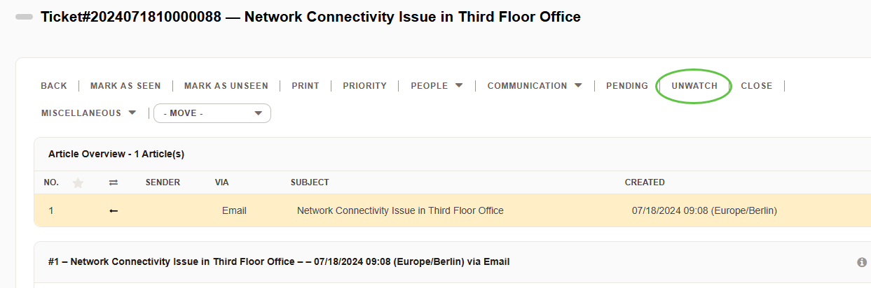 Enhancing Efficiency in Ticket Management with Watch (and bulk unwatch) Feature in Znuny